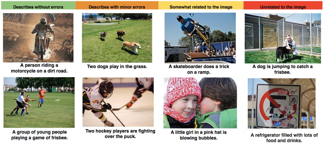 Если ты думаешь, что это впечатляет, то ты не знаешь последних новостей. Сегодняшние нейросети распознают объекты не только не хуже, но даже лучше человека, а также умеют рассказывать, что изображено на фотографии. Еще в конце 2014 года исследователи из Google и Стэнфордского университета показали нейросеть, способную генерировать осмысленные подписи к фотографиям. Даже несмотря на большой процент ошибок, это впечатляло.