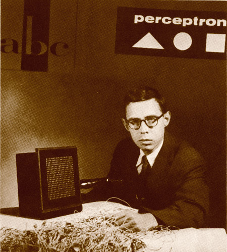 Впервые идею искусственной нейронной сети предложил нейрофизиолог Фрэнк Розенблатт в 1957 году и реализовал ее в нейрокомпьютере «Марк-1» в 1960-м. Математическая модель такой сети получила имя «перцептрон», а само устройство представляло собой небольшой компьютер, снабженный табло из нескольких сотен фотоэлементов. Показывая компьютеру изображения, а затем корректируя весовые коэффициенты связей искусственных нейронов, можно было научить нейронную сеть распознавать геометрические фигуры и некоторые буквы алфавита. По нынешним временам «Марк-1» - это игрушка. К тому же она страдала от множества проблем: к примеру, изображения не распознавались при деформации или повороте. Сейчас понятно, что при тогдашнем уровне вычислительной мощности многие вещи просто нельзя было реализовать. Перцептроны интересны скорее с исторической точки зрения - реальных задач они не решали. В 1969 году Марвин Минский и Сеймур Паперт описали эти опыты в книге «Перцептроны», после чего исследования в области нейросетей были свернуты в пользу, как тогда казалось, более перспективных символьных вычислений.