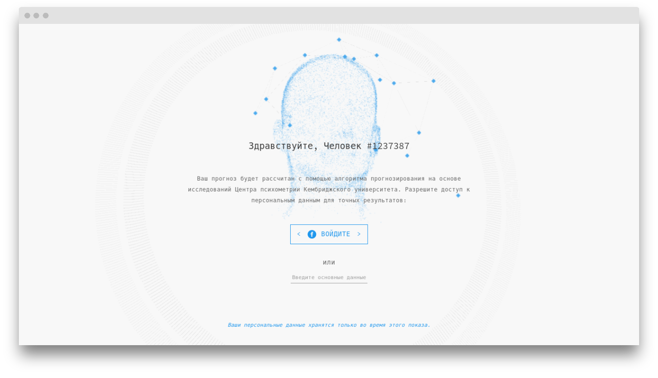 2016-12-27 16:02 Predictive World — это сервис, который использует big data, чтобы угадать ваше будущее. Узнайте продолжительность своей жизни, возможность смены работы, вероятность развода или вступления в брак. За каждым активным пользователем Сети тянется длинный цифровой след из писем, фотографий, лайков и комментариев в социальных сетях. С помощью анализа этих данных можно не только составить достаточно точный портрет пользователя, но и предсказать его будущее. Predictive World демонстрирует это на практике всем желающим. Для более полного изучения личности вам понадобится предоставить доступ к своему профилю в Facebook. Однако работа Predictive World строится не только на основе анализа лайков и комментариев в этой социальной сети, как в сервисе Apply Magic Sauce. В Predictive World полученная о вас информация сверяется со статистическими данными из многочисленных источников, на основе чего делается прогноз о наступлении того или иного события в вашей жизни. Разумеется, не вся информация, собранная или угаданная о вас, окажется достоверной. На этот случай разработчики предусмотрели возможность редактирования некоторых данных. При этом сразу же изменяются все связанные параметры, например количество ежедневно выкуриваемых сигарет и вес влияют на продолжительность жизни, а размер зарплаты на удовлетворённость от работы. Хотя сервис Predictive World запущен в рамках рекламной кампании новой компьютерной игры, результаты его работы выглядят очень достоверно. Предлагаю вам убедиться в этом самостоятельно. Источник: lifehacker.ru Комментарии: |