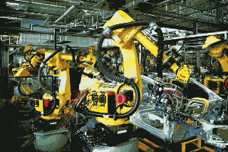 Пускай Вас не смущает то, что видео не самое «свежее», в этом ролике важно то, что принципиально понятна автоматизация. Два робота FANUC Arc-Mate на видео (справа) осуществляют имитацию дуговой сварки, с использованием специальной опции «Coordinated motion» и позиционера (вращателя). Вроде бы, принцип работы тот же, что и в операциях «перемещения»: робот двигается по заранее запрограммированной траектории. Настройку же технологии сварки осуществляет уже сторонний интегратор, который и устанавливает сварочную горелку на фланец робота, устанавливает проволокоподающее устройство над 3-ей осью и много другое. Но именно в специальных интеллектуальных опциях и заключается основное преимущество роботизации, так как они позволяют автоматизировать процесс практически полностью.