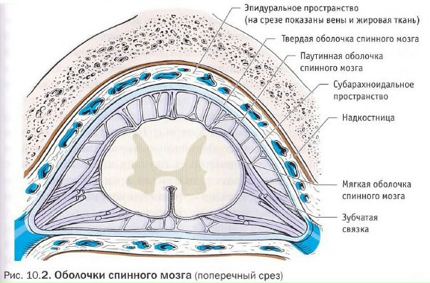 2017-06-16 16:19 Строение и функции оболочек спинного и головного мозга. Цереброспинальная жидкость: функциональное значение, образование, циркуляция, реабсорбция. ? Головной и спинной мозг окружены 3-мя соединительнотканными листками – мозговыми оболочками (снаружи внутрь): 1. Твёрдой (ТМО); 2. Паутинной (ПО); 3. Мягкой (ММО). Твёрдую мозговую оболочку называют также пахименинкс (pachimeninx), а мягкую и паутинную объединяют под названием лептоменингеальные оболочки. Оболочки мозга фиксируют ГМ и СМ в черепе и позвоночном канале и выполняют защитную, амортизационную функции, обеспечивают выработку и всасывание СМЖ. ? 1. ТМО (dura mater) образована двумя слоями (листками) плотной волокнистой соединительной ткани с высоким содержанием эластических волокон. ? Наружный слой ТМО в полости черепа представляет собой надкостницу, выстилающую его внутреннюю поверхность. ? Внутренний слой – собственно ТМО – служит наружной границей предельно узкого субдурального пространства. В местах расслоения и отдаления друг от друга слоёв ТМО освобождается место для синусов ТМО. Между верхним и нижним саггитальным синусами натянута двойная складка внутреннего слоя ТМО – серп большого мозга. Он провисает между полушариями большого мозга в срединно-сагиттальной плоскости. Своеобразным продолжением серпа является намёт мозжечка, разделяющий мозжечок и большой мозг. Также двойной складкой внутреннего слоя ТМО образованы: серп мозжечка, диафрагма турецкого седла, стенка меккелевой полости (в которую заключён тройничный узел). ? Кровоснабжается ТМО (а также кости черепа) передней, средней и задней менингеальными артериями. Средняя менингеальная артерия образует анастамоз со слёзной артерией – ветвью глазной артерии. Таким образом, при закупорке глазной артерии проксимальнее отхождения центральной артерии сетчатки, кровоток будет осуществляться через среднюю менингеальную артерию. ? Иннервируется ТМО выше намёта мозжечка ветвями тройничного нерва, ниже намёта – ветвями спинномозговых нервов верхних шейных сегментов. В спинном мозге продолжение наружного слоя ТМО становится надкостницей позвоночного канала, а внутренний слой окутывает спинной мозг. Пространство, расположенное между двумя листками ТМО в спинном мозге называют эпидуральным, оно содержит пучки соединительной ткани, жир и внутреннее венозное сплетение. Нижний конец ТМО – люмбальный мешок – укутывает конский хвост, оканчиваясь на уровне S2. Ниже этого уровня волокна ТМО тянутся вниз, образуя терминальную нить, врастающую в надкостницу в области крестца. ? 2. ПО (arachnoidea) и головного, и спинного мозга – это тонкая, нежная, лишённая сосудов мембрана, тесно прилегающая к внутренней поверхности твёрдой мозговой оболочки. Пространство, расположенное между ПО и ММО называется субарахноидальным, в нём циркулирует СМЖ. ПО и ММО обмениваются тончайшими нитями соединительной ткани, подвешенными в субарахноидальном пространстве. Поскольку ММО плотно сращена с поверхностью мозга, повторяя его рельеф, в некоторых местах субарахноидальное пространство сужается, в других – расширяется (подобные места расширения называются цистернами). ? 3. ММО (pia mater) состоит из тонких слоёв мезодермальных клеток, напоминающих эндотелий. К подлежащему мозговому веществу ММО крепится при помощи эктодермальной мембраны, 