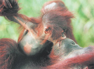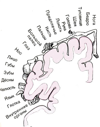 Поцелуй у шимпанзе. Фото Натальи Домриной. Карта чувствительной коры головного мозга человека, составленная канадским нейрохирургом У. Пенфилдом. На ней отмечены области, куда поступает осязательная информация от разных органов тела. Почему свою любовь мы выражаем поцелуями? В 1960 году британский зоолог Десмонд Моррис первый предположил, что поцелуй (а по-научному говоря — оскуляция, от латинского слова «os» — рот) возник из привычки самок человекообразных обезьян пережёвывать пищу для малышей, а потом кормить их изо рта в рот. Так делают шимпанзе, и, скорее всего, так поступали наши предки. У некоторых народов и сейчас матери иногда кормят младенцев пережёванной пищей. Прижатие губ к губам, видимо, успокаивает голодного малыша и выражает любовь и заботу. Не исключено, что средством выражения любви поцелуй стал при участии феромонов. Многие животные используют эти специальные химические соединения для взаимодействия с другими представителями вида. Особенно насекомые, которые выбрасывают феромоны как сигналы тревоги или наличия пищи либо чтобы заявить о своей готовности к размножению (см. «Наука и жизнь» № 7, 2005 г.). Существуют ли феромоны у человека, остаётся под вопросом. Некоторые физиологи предполагают, что в качестве феромонов могут служить частично выделяющиеся с потом стероидные гормоны — андростенол, вырабатывающийся главным образом у мужчин, и женские гормоны. По разным данным, 15—25% людей имеют в носовой полости так называемый вомероназальный орган, у свиней и грызунов отвечающий за восприятие феромонов. Если у человека действительно есть феромоны, управляющие симпатией и страстью, то для их передачи нельзя придумать ничего лучше поцелуя. Чем больше мы целуемся, тем больше затягивает это занятие. Губы относятся к частям тела, наиболее плотно насыщенным нервными окончаниями. При оскуляции губы запускают в мозг сообщения о приятнейших ощущениях, сильнейших эмоциях и физиологических реакциях. Не менее пяти пар черепных нервов, влияющих на деятельность мозга, при поцелуе получают информацию от губ, языка, щёк и носа о температуре, вкусе, запахе и движениях партнёра. Если на схеме коры головного мозга обрисовать области, куда поступает осязательная информация, то особенно много места займёт часть коры, связанная с губами. В своём недавнем исследовании психологи из колледжа Лафайет (США) сравнили уровень выработки двух важнейших гормонов у пятнадцати влюблённых пар после поцелуя и после того, как они всего лишь разговаривали, взявшись за руки. Это гормоны окситоцин (он участвует в образовании и развитии социальных связей, влияет на оргазм и участвует в процессе родов) и кортизол, играющий ключевую роль в реакциях на стресс. Психологи предполагали, что поцелуй «взорвёт» уровень окситоцина. Они думали, что этот эффект сильнее проявится у тех девушек, которые поддерживали особенно глубокие отношения со своими партнёрами. Исследователи также предсказывали падение кортизола, так как поцелуй должен снижать стресс. Но оказалось, что уровень окситоцина повышался только у юношей, а у девушек он понижался и после поцелуя, и после пожатия рук. Учёные пришли к выводу, что девушкам недостаточно одних поцелуев для возникновения эмоциональной привязанности или сексуального возбуждения. Девушкам, похоже, нужна более романтич
