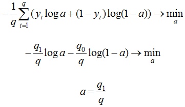 2019-04-25 02:41 Эту функцию называют также «логлосс» (logloss / log_loss), перекрёстной / кросс-энтропией (Cross Entropy) и часто используют в задачах классификации. Разберёмся, почему её используют и какой смысл она имеет. Для чтения поста нужна неплохая ML-математическая подготовка, но даже новичкам я бы рекомендовал почитать (хотя я не очень заботился, чтобы «всё объяснялось на пальцах»). ![]() Начнём издалека… Вспомним, как решается задача линейной регрессии. Итак, мы хотим получить линейную функцию (т.е. веса w), которая приближает целевое значение с точностью до ошибки: ![]() Здесь мы предположили, что ошибка нормально распределена, x – признаковое описание объекта (возможно, в нём есть и фиктивный константный признак, чтобы в линейной функции был свободный член). Тогда мы знаем как распределены ответы нашей функции и можем записать функцию правдоподобия выборки (т.е. произведение плотностей, в которые подставлены значения из обучающей выборки) и воспользоваться методом максимального правдоподобия (в котором для определения значений параметров берётся максимум правдоподобия, а чаще – его логарифма): ![]() В итоге оказывается, что максимизация правдоподобия эквивалентна минимизации среднеквадратичной ошибки (MSE), т.е. эта функция ошибки не зря широко используется в задачах регрессии. Кроме того, что она вполне логична, легко дифференцируема по параметрам и легко минимизируется, она ещё и теоретически обосновывается с помощью метода максимального правдоподобия в случае, если линейная модель соответствует данным с точностью до нормального шума. Давайте ещё посмотрим, как реализуется метод стохастического градиента (SGD) для минимизации MSE: надо взять производную функции ошибки для конкретного объекта и записать формулу коррекции весов в виде «шага в сторону антиградиента»: ![]() Получили, что веса линейной модели при её обучении методом SGD корректируются с помощью добавки вектора признаков. Коэффициент, с которым добавляют, зависит от «агрессивности алгоритма» (параметр альфа, который называют темпом обучения) и разности «ответ алгоритма – правильный ответ». Кстати, если разница нулевая (т.е. на данном объекте алгоритм выдаёт точный ответ), то коррекция весов не производится. Log Loss Теперь давайте, наконец, поговорим о «логлоссе». Рассматриваем задачу классификации с двумя классами: 0 и 1. Обучающую выборку можно рассматривать, как реализацию обобщённой схемы Бернулли: для каждого объекта генерируется случайная величина, которая с вероятностью p (своей для каждого объекта) принимает значение 1 и с вероятностью (1–p) – 0. Предположим, что мы как раз и строим нашу модель так, чтобы она генерировала правильные вероятности, но тогда можно записать функцию правдоподобия: ![]() После логарифмирования правдоподобия получили, что его максимизация эквивалентна минимизации последнего записанного выражения. Именно его и называют «логистической функции ошибки». Для задачи бинарной классификации, в которой алгоритм должен выдать вероятность принадлежности классу 1, она логична ровно настолько, насколько логична MSE в задаче линейной регрессии с нормальным шумом (поскольку обе функции ошибки выводятся из метода максимального правдоподобия). Часто гораздо более понятна такая запись logloss-ошибки на одном объекте: ![]() Отметим неприятное свойство логосса: если для объе