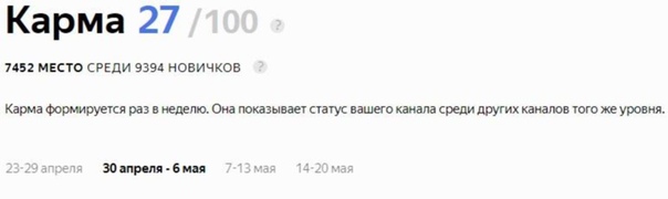 5 углов — это 100%. Каждый угол составляет максимальные 20%. Не знаю, можно ли добиться идеального зеленого состояния, но попытаться однозначно стоит. Карма формируется раз в неделю. Она показывает статус вашего канала среди других каналов того же уровня. На этих данных видно, что количество участников увеличивается или уменьшается, в зависимости от даты: