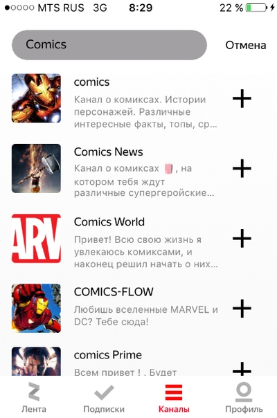 На этом примере я попробую оптимизировать чужой канал. URL и название канала дублируются (comics). Чтобы ранжироваться в поиске приложения по двум запросам, рекомендуется написать название канала кириллицей (комикс), либо использовать два слова одновременно (comics | комикс).