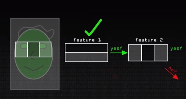 Уловка третья. Алгоритм Виолы — Джонса. Коротко: сейчас будем вычитать друг из друга прямоугольные области на картинке и быстро решать, на каком кадре точно нет лиц. В 2002 году Пол Виола и Майкл Джонс опубликовали работу на тему быстрого распознавания объектов на видео, и с тех пор работу процитировали примерно 17 000 раз. Их метод на тогдашних слабых процессорах позволял работать с 15 кадрами видео в секунду и успешно находить там лица — неважно, сколько их и какого они размера. С тех пор этот алгоритм не сдавал позиций и до сих пор используется в фотоаппаратах, планшетах и смартфонах. В чем его суть? Создатели вводят четыре типа узоров, которые, как картинку с глазом в начале статьи, мы будем примерять к разным частям кадра. ![]() Если тест пройден и примерка показала, что верхняя часть и вправду темнее нижней, то с кадром работаем дальше и проверяем его во второй раз, уже с другими пикселями. Если хоть на каком-то этапе окажется, что кадр не соответствует признаку, его моментально отбрасываем и считаем, что лицо внутри проверяемого участка не нашлось. Либо берем следующий кадр, либо ищем лицо на том же самом, но уже в другом месте. Такой подход позволяет не проводить почти никаких вычислений с большей частью кадров на видео и ускоряет процесс. ![]() Логичный вопрос — как понять, на какой участок кадра следует примерить признаки, и смотреть, правда ли квадрат посередине оказался в целом темнее квадратов по сторонам? И это сложная часть в алгоритме. Перед тем как его можно будет использовать для определения лиц, сначала разработчикам приходится заняться обучением модели. Для этого они находят пару тысяч фотографий с лицами и пару тысяч фотографий без них, а потом на каждую из этих картинок примеряют признаки во всех возможных положениях, пропорциях и размерах. Это очень долгий процесс. Для стандартного размера признака 24?24 пикселя существует около 170 000 возможных вариантов его разрешенных состояний. Нужно проверить их все, а затем решить, какая именно рамка, какого размера и в какой части картинки лучше всего отделила лица от фотографий стены — с учетом того, что абсолютно никакая рамка не справится с этой задачей хорошо в одиночку. Но допустим, что нашлась какая-то рамка. Может быть, она вычитает значения пикселей глаз из пикселей носа и пропускает на следующий этап почти все лица, а вместе с ними еще много лишних фотографий, на которых просто так получилось, что одна часть светлее другой. Эту рамку мы будем использовать как первый тест в алгоритме, а после нее выберем вторую по эффективности рамку, затем третью, четвертую и так далее — всего обычно используют несколько тысяч проверок. Мы ранжировали их так, что сначала алгоритм проверяет участок картинки на общие признаки: верно ли, что левая половина участка ярче правой, и если это действительно так, то картинка проходит на следующий этап. Признаки плавно становятся более конкретными и точными, хотя, может быть, и нелогичными, с точки зрения человека. Но на каждом этапе машина подбирает их таким образом, чтобы отсеять максимальное количество ненужных примеров и пропустить дальше все подходящие. В машинном обучении этот умный подбор цепочек простых тестов называют бустингом. Кстати, на первом участке фотографии, где нашлось лицо, нельзя останавливать алгоритм — нужно проверить и другие кус