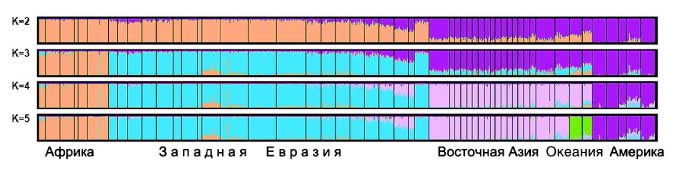 2019-11-08 11:26 Сколь сильно расы различаются генетически? Можно ли по ДНК судить об этнической принадлежности? Какова ДНК-эволюция рас? Международное исследование, в котором принимал участие автор статьи, главный научный сотрудник Института общей генетики им. Н. И. Вавилова Российской академии наук Лев Анатольевич Животовский, показало, что расы хорошо различимы по четыремстам признакам ДНК, что они возникли эволюционным путем и что они мало отличаются одна от другой в глобальном масштабе. Наука и жизнь // Иллюстрации Наука и жизнь // Иллюстрации Наука и жизнь // Иллюстрации Наука и жизнь // Иллюстрации Наука и жизнь // Иллюстрации ![]() Рис. 1а. Генетическое подразделение всех 1056 индивидов на большие группы. ![]() Рис. 1б. Генетическое подразделение евразийской расы и составляющих ее народов Европы, Ближнего Востока и Центральной/Южной Азии. ![]() Рис. 1в. Генетическое подразделение народов Африки, Восточной Азии, Океании и Америки на генетические группы. ![]() Рис. 2. Эволюционное древо популяций человека по данным о ДНК-маркерах (Zhivotovsky et al., 2003). ![]() Если я чем-то на тебя не похож, Каждый человек генетически уникален, и в то же время ДНК разных людей совпадают на 99,9%. Если учесть, что ДНК человека содержит примерно 3 млрд пар нуклеотидов, то у двух произвольно взятых людей лишь около трех миллионов из них могут не совпадать. Много это или мало? Насколько генетические различия связаны с расовой и национальной принадлежностью? Мы легко отличим внешне представителей, например, аборигенов Океании и европейцев. Но в какой степени внешние признаки связаны с различиями в ДНК? Группа ученых, в которую вошли представители России, Франции и США, провели обширное исследование по сопоставлению ДНК у разных народов мира. Его цель состояла в том, чтобы выявить, сколь сильно этнические группы отличаются одна от другой генетически. И еще: можно ли, определив сходство этнических групп, обратить обнаруженные тенденции назад во времени и восстановить картину образования одних популяций из других по мере расселения человечества по планете? Основные результаты опубликованы в «Science», «American Journal of Human Genetics» и других журналах. Чтобы ответить на вопрос, можно ли по генетическим данным определить этническую принадлежность человека, были исследованы образцы ДНК, взятые у 1056 представителей 52 этнических групп различных регионов мира: Экваториальной, Южной и Северной Африки, Западной, Центральной и Восточной Азии, Европы, Океании, Центральной и Южной Америки. Среди них — пигмеи, банту, палестинцы, бедуины, французы, баски, русские, адыгейцы, якуты, японцы, майя и многие другие народности. Для анализа было выбрано около четырехсот признаков ДНК (генетических локусов), не ассоциированных ни с какими приспособительными свойствами и внешними различиями. Исследователи сознательно не хотели связывать результаты анализа с признаками, обычно используемыми при антропологическом описании: цветом кожи, разрезом глаз, телосложением и т. п. Поэтому выбор пал на так называемые микросателлитные маркеры — короткие последовательности повторяющихся сочетаний нуклеотидов. Эти последовательности расположены, как правило, на тех участках ДНК, которые называют «молчащими». Они не кодируют никаких белков, но могут служить удобной генетической меткой, поскольку накапливают случайные мутации