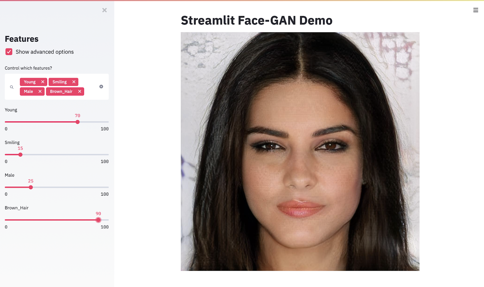 2020-04-07 04:25 В статье показано, как сделать приложение для создания фотореалистичных лиц, используя TensorFlow и Streamlit. Мы покажем вам, как быстро построить приложение Streamlit для синтеза лиц знаменитостей с помощью GANs, Tensorflow и st. cache. Модели машинного обучения - это черные ящики. Да, вы можете запускать их на тестовых наборах и строить причудливые кривые производительности, но все равно часто бывает трудно ответить на основные вопросы о том, как они работают. Удивительно мощный источник озарения-это просто играть с вашими моделями! Настройка входов. Следите за выходами. Пусть ваши коллеги и менеджеры тоже играют с ними. Такой интерактивный подход - это не только мощный способ обрести интуицию, но и отличный способ заставить людей восхищаться вашей работой. Создание интерактивных моделей - это один из вариантов использования, который вдохновил Streamlit, фреймворк Python, который делает написание приложений таким же простым, как написание скриптов Python. Этот обзор поможет вам создать приложение Streamlit, чтобы играть с одной из самых волосатых и черных коробок-iest моделей там: глубокая генеративная состязательная сеть (GAN). В этом случае мы визуализируем PG-GAN Nvidia [1], используя TensorFlow для синтеза фотореалистичных человеческих лиц из тонкого воздуха. Затем, используя удивительную модель TL-GAN Shaobo Guan [2], мы создадим приложение, которое даст нам возможность настроить синтезированные GAN лица знаменитостей по таким признакам, как возраст, улыбчивость, мужское сходство и цвет волос. К концу урока вы получите полностью параметрическую модель человека! (Обратите внимание, что мы не создавали атрибуты. Они пришли из набора данных CelebA [3], и некоторые из них могут быть немного странными…) Начало работы с Streamlit Если вы еще не установили Streamlit, вы можете сделать это, запустив: pip install streamlit streamlit hello И если вы опытный Streamlit-Эр, вам нужно будет быть на 0.57.1 или более поздней версии, так что не забудьте обновить! pip install --upgrade streamlit Настройка вашей среды Прежде чем мы начнем, используйте команды ниже, чтобы проверить РЕПО проекта GitHub и запустить демо-версию Face GAN для себя. Эта демонстрация зависит от Tensorflow 1, который не поддерживает Python 3.7 или 3.8, поэтому вам понадобится Python 3.6. На Mac и Linux мы рекомендуем использовать pyenv для установки Python 3.6 вместе с текущей версией, а затем настроить новую виртуальную среду с помощью venv или virtualenv. В Windows навигатор Anaconda Navigator позволяет выбрать версию Python с помощью интерфейса point-and-click. Когда все будет готово, откройте окно терминала и введите: git clone https://github.com/streamlit/demo-face-gan.git Дайте ему минуту, чтобы закончить загрузку обученного GAN, а затем попробуйте поиграть с ползунками, чтобы исследовать различные грани, которые GAN может синтезировать. Довольно круто, правда? ![]() Полный код приложения - это файл, содержащий ~190 строк кода, из которых только 13 являются потоковыми вызовами. Это верно, весь пользовательский интерфейс выше нарисован только из этих 13 строк! Давайте взглянем на то, как структурировано приложение: def main():
